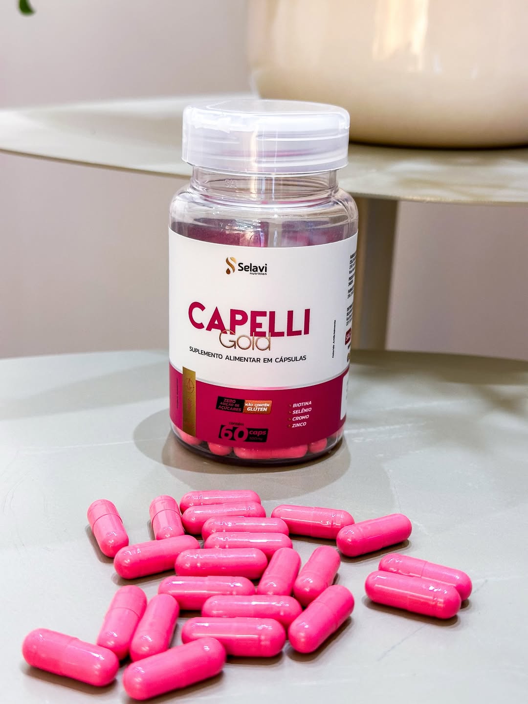 O Capelli Gold é um suplemento capilar desenvolvido para quem busca cabelos mais cheios, fortes e saudáveis, sem abrir mão do cuidado com a pele e as unhas. Sua fórmula concentra vitaminas e minerais que atuam diretamente no bulbo capilar, estimulando o crescimento e reduzindo a quebra e a queda.